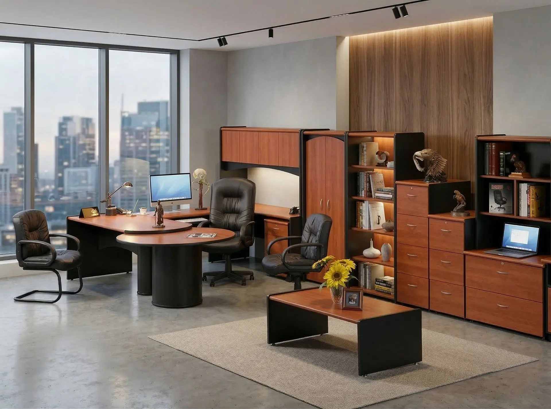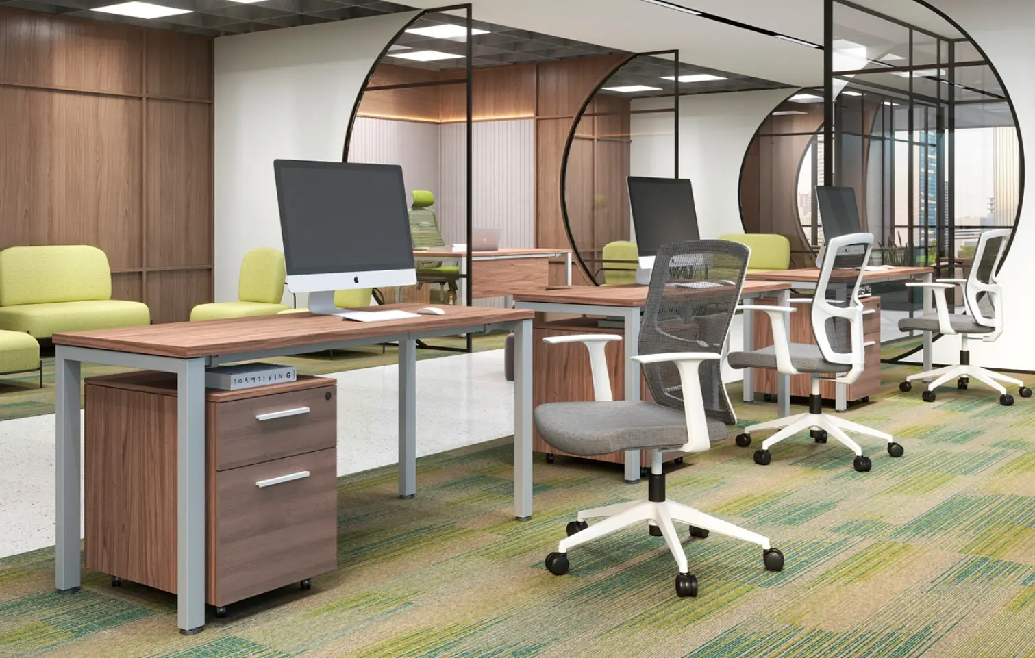 Mobiliario de oficina vanguardista con diseños ergonómicos y minimalistas para una de área de trabajo funcional.
