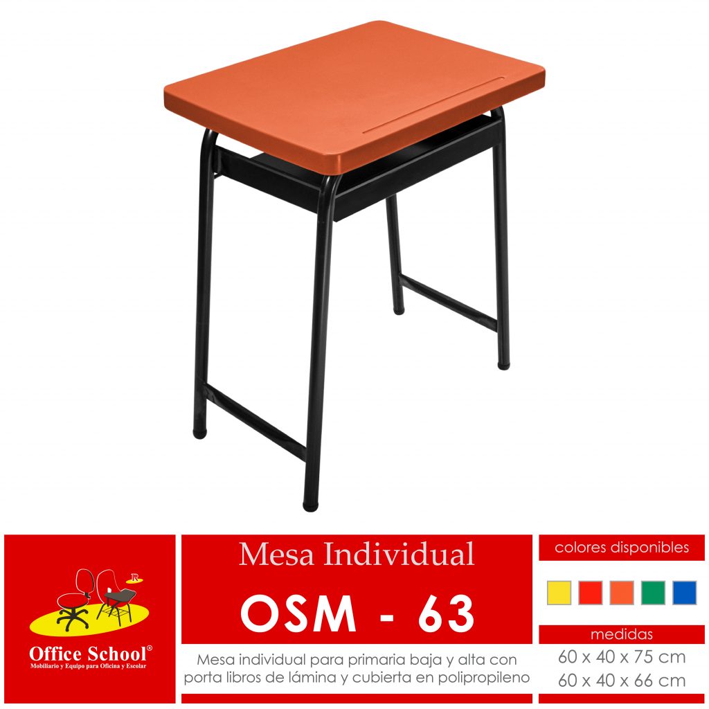 MESA INDIVIDUAL CON ESPACIO PARA LIBROS EN LAMINA CAL. 20, PARA PRIMARIA BAJA Y ALTA, CUBIERTA EN POLIPROPILENO 60X40X75